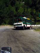 Samstag gegen 2 gemuetlich mit Hang-over gestartet und ein frisches Buch (Vitae ...) eingepackt. Auf der Fahrt ist, bis auf die kurvige Strecke am Berghang entlang, nicht viel passiert. Habe mich mit einen aelteren Amerikaner unterwegs unterhalten, der die USA zweimal durchlaufen hat und mit seinen 62 Jahren bereits 20 Jahre im Vorruhestand ist... also nichts weiter Besonderes. :-) Er hatte Dharamshala als Ziel, wo er Yoga und Meditation lernen wollte, so dass sich unsere Wege wieder trennten.